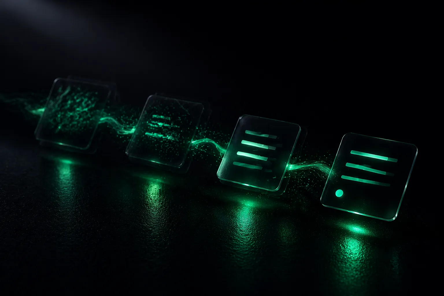 Produce, review, correct, loop back, request a green light, then notify. The pipeline launches the right step at the right moment.